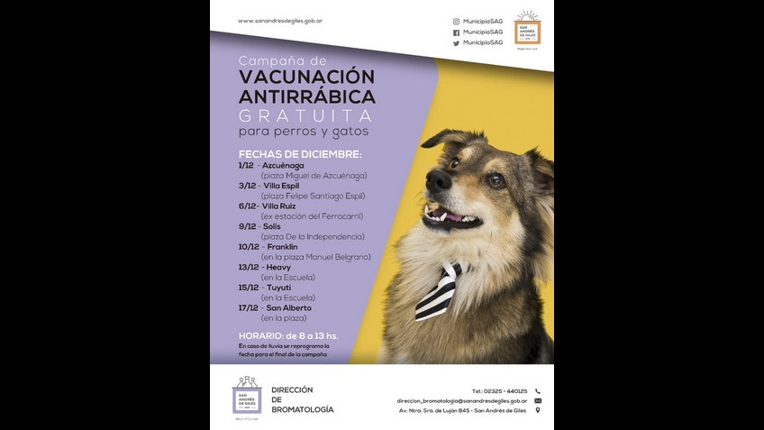 Sigue la Vacunación Antirrábica gratuita en diciembre en las localidades rurales