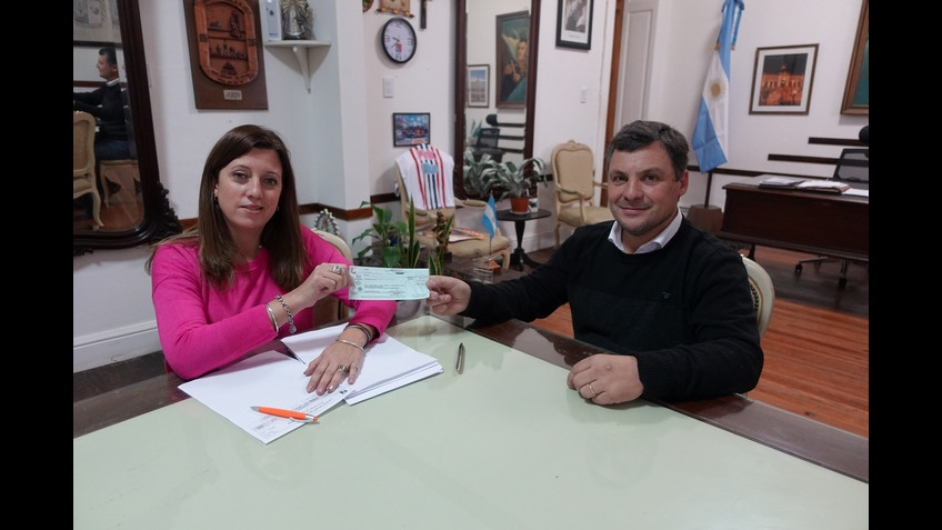 El intendente Miguel Gesualdi hizo entrega de un subsidio al Consejo Escolar que fue recibido por su presidenta Micaela Albeverio.