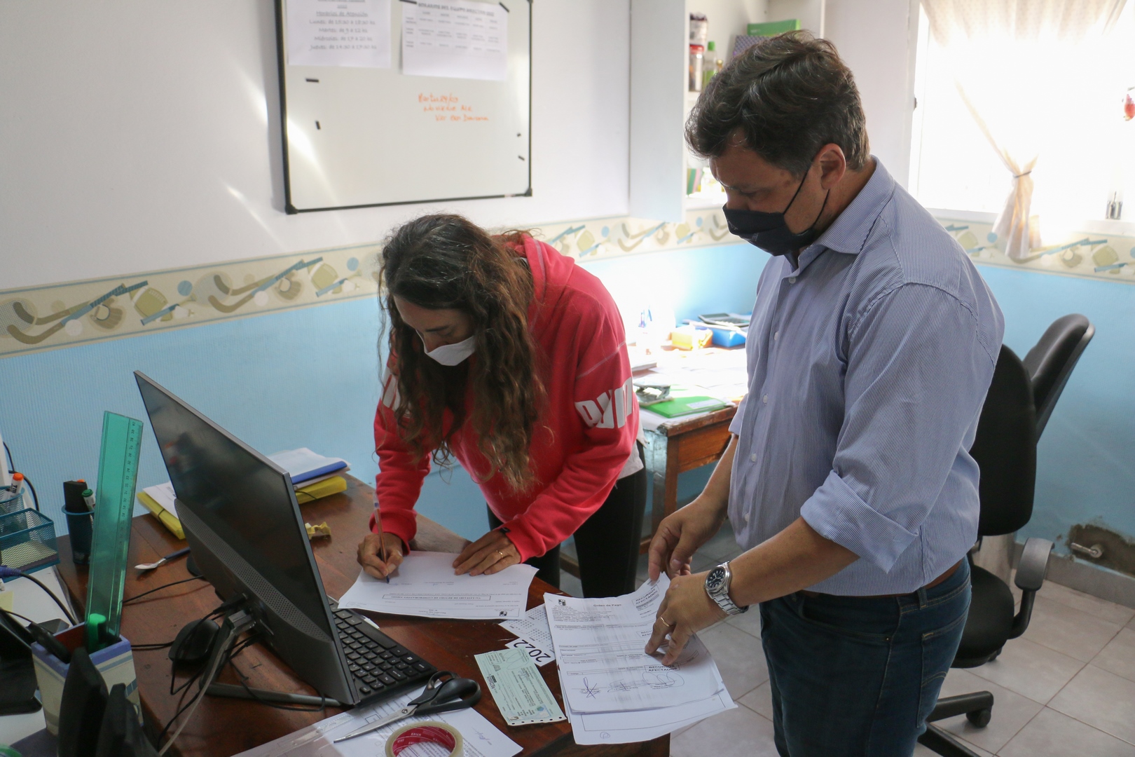 El intendente Miguel Gesualdi concurrió hoy a las instalaciones del Centro de Educación Física Nº 24. Allí fue recibido por la secretaria de la institución, Gisella Mazzeo.