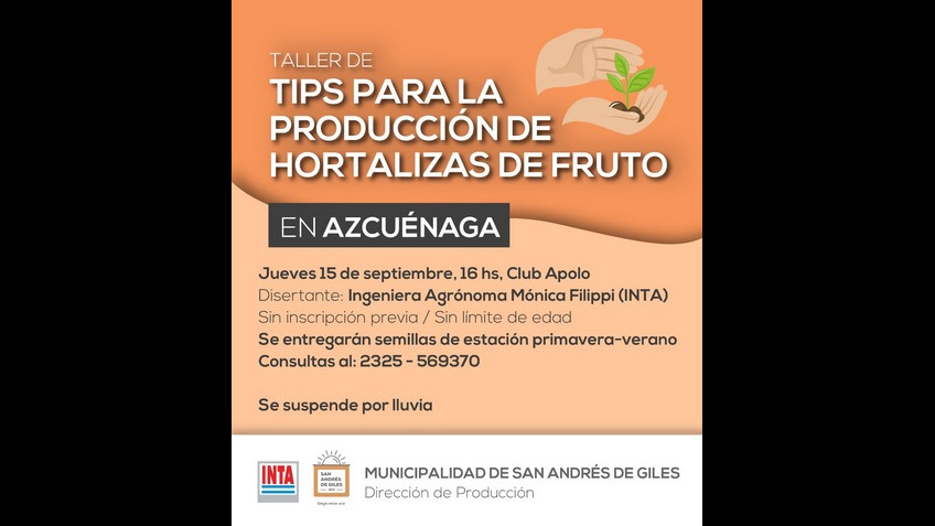 Jueves 15/9, 16 hs, Club Apolo Sin inscripción previa ni límite de edad, gratuito. Disertante: Ing. Agr. Mónica Fillippi (INTA)