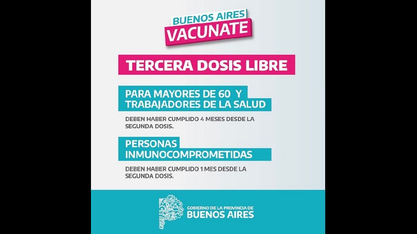 Tercera dosis libre para mayores de 60 años y trabajadores de la salud