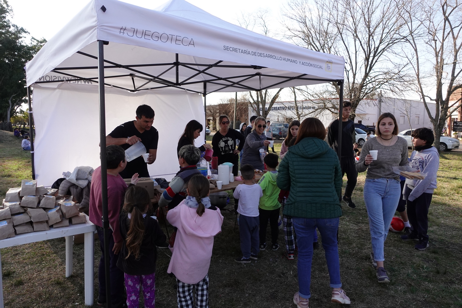 El intendente municipal Miguel Gesualdi estuvo presente durante la jornada, colaborando con la animación y el entretenimiento. Hubo inflables, cama elástica, personajes, juegos y el show del Pollo Mago.