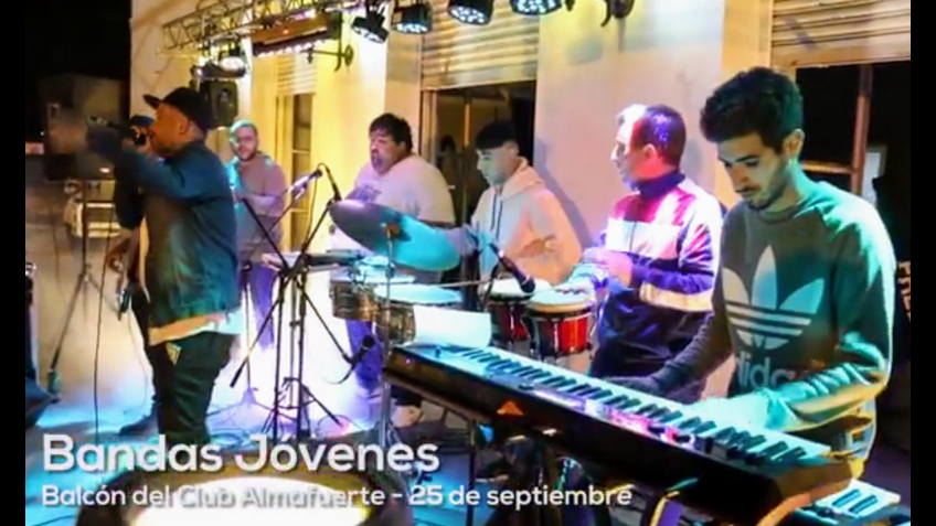 Desde el balcón del Club Atlético Almafuerte, las bandas locales Rojo Galaxia, Concha Parió e Interkambio Cumbia llenaron la noche de música y diversión.