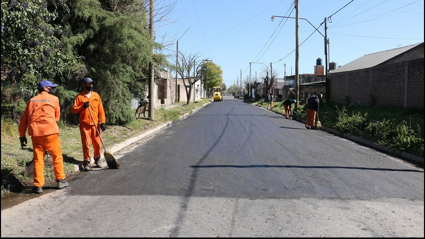 Personal de la secretaría de Obras y Servicios Públicos trabajó en la aplicación de la segunda capa de asfaltado de las calles Saavedra entre Italia y Lavalle, San Lorenzo entre Etcheverry y Rawson y Etcheverry entre Chacabuco y España.