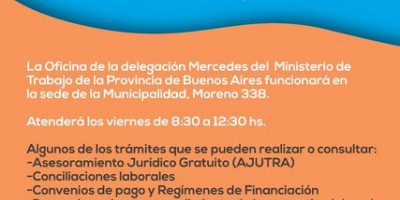La Oficina de Trabajo Delegación Mercedes atenderá los viernes en la Municipalidad