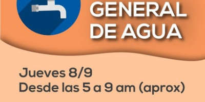 Corte general de agua corriente este jueves