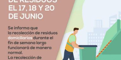 Habrá recolección de residuos el 17, 18 y 20 de junio