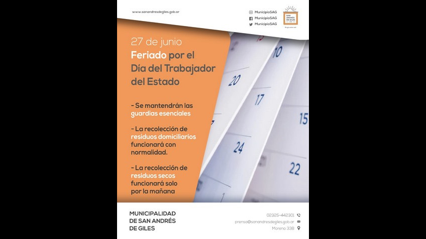 - La recolección de residuos domiciliarios funcionará con normalidad.