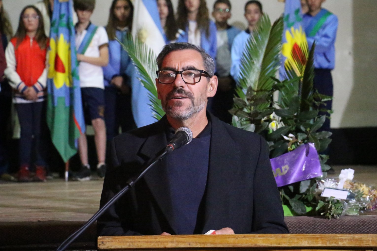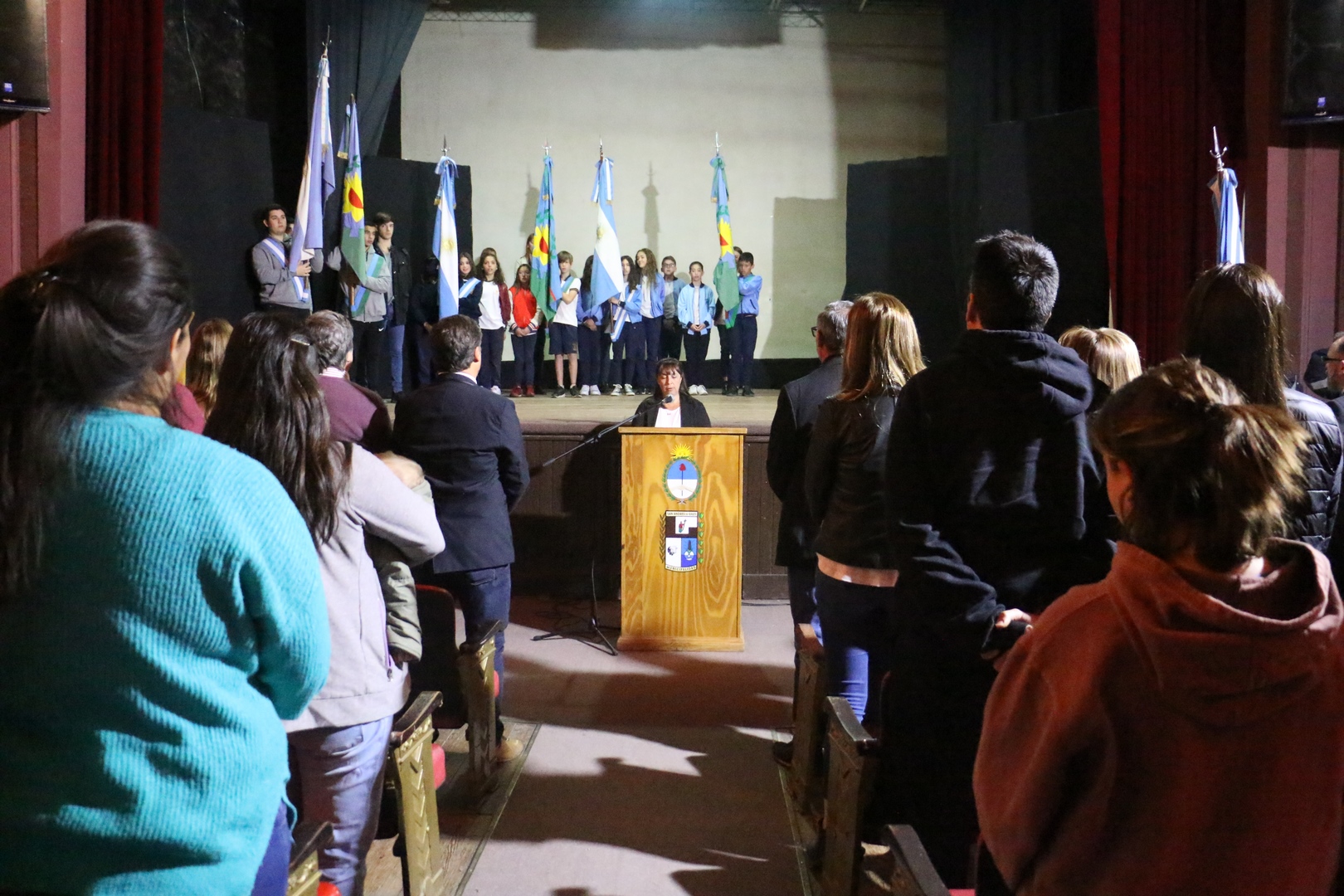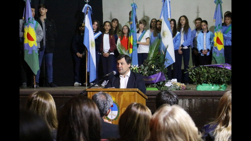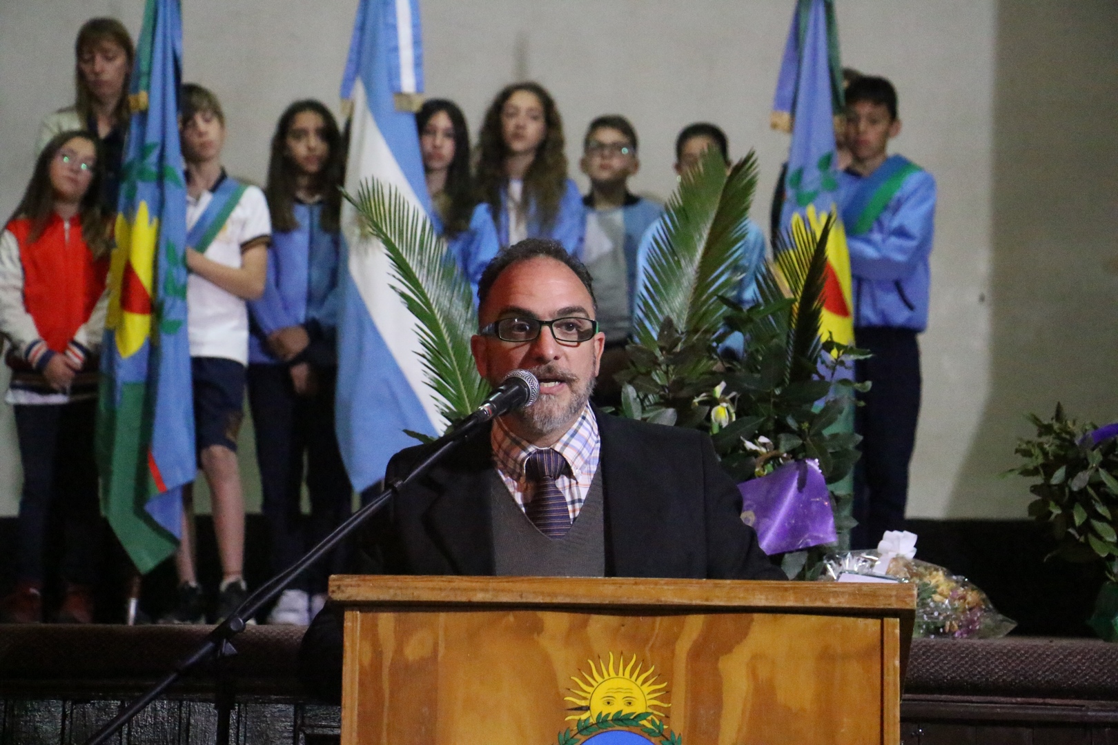 El acto estuvo presidido por el intendente Miguel Gesualdi, acompañado por el presidente del HCD Gustavo Lennard, la presidenta del Consejo Escolar Micaela Albeverio, integrantes del Departamento Ejecutivo y del HCD, instituciones, autoridades y vecinos presentes.