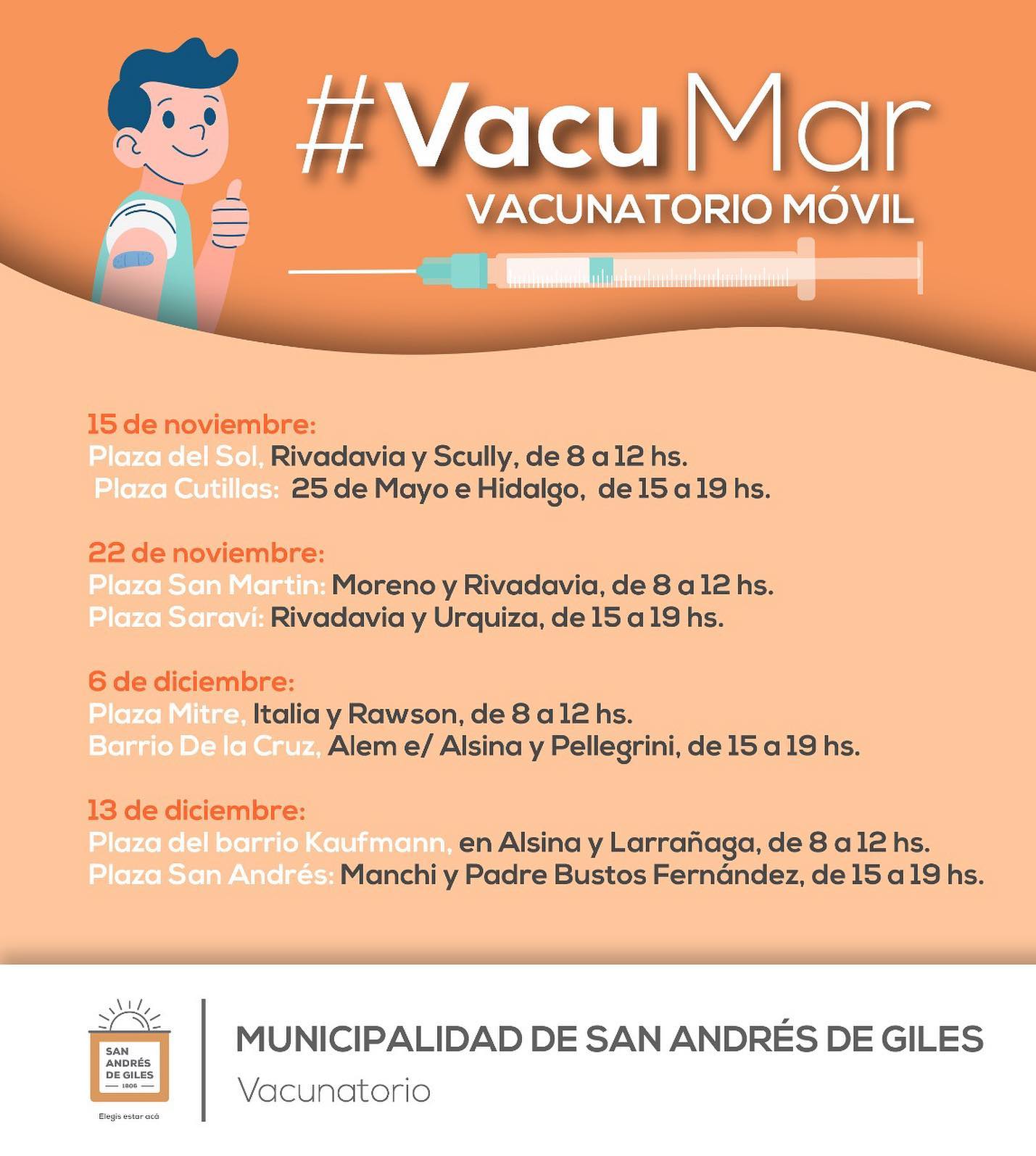 Los días MARTES se está realizando la campaña de vacunación #VACUMAR