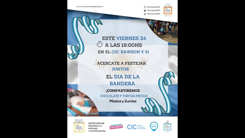 Este viernes 24 de junio a las 18:00 en el CIC, en Rawson y Preceptora Ferreyra (51) se realizará un encuentro para celebrar el Día de la Bandera.