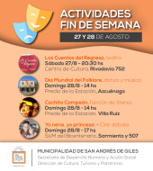 Organizadas por áreas de la Municipalidad, algunas con colaboración de instituciones intermedias y nacionales, se realizará este fin de semana, numerosas actividades culturales, educativas y de recreación.