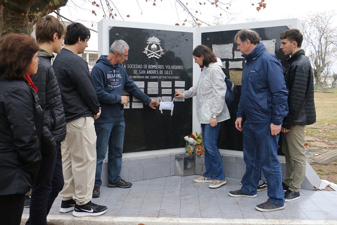 Este domingo 24, primero en la sede y después en el Cementerio Norte, participó el intendente Miguel Gesualdi, quien se acercó junto a la secretaria Verónica Di Tata, con la presencia del presidente del HCD, Gustavo Lennard y demás ediles, el diputado provincial Carlos Puglelli, familiares, vecinos, entre otros. Acompañaron al presidente de la Asociación, Diego Gaynor, al jefe del Cuerpo Activo, Gustavo Crivelli y a todos los bomberos.