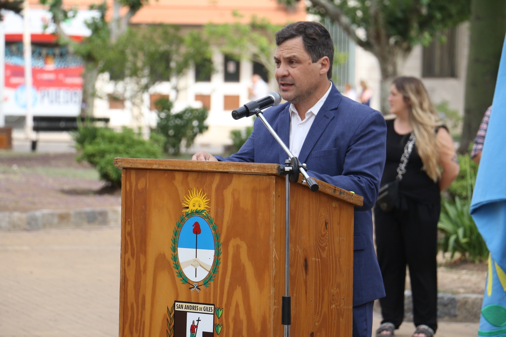 En el 216 aniversario de la fundación de San Andrés de Giles, el acto estuvo presidido por el intendente Miguel Gesualdi, acompañado por el presidente del H.C.D, Gustavo Lennard, concejales, la presidenta del Consejo Escolar Micaela Albeverio, consejeras escolares. Hubo numerosas autoridades ejecutivas, educativas, policiales, acompañaron los ex intendentes Julio Rossi, Luis Ghione y Carlos Puglelli, actual diputado provincial.