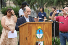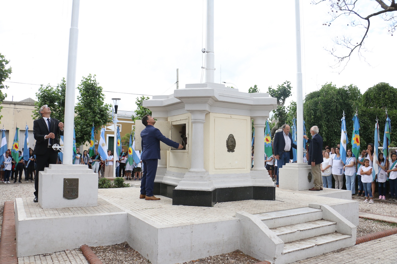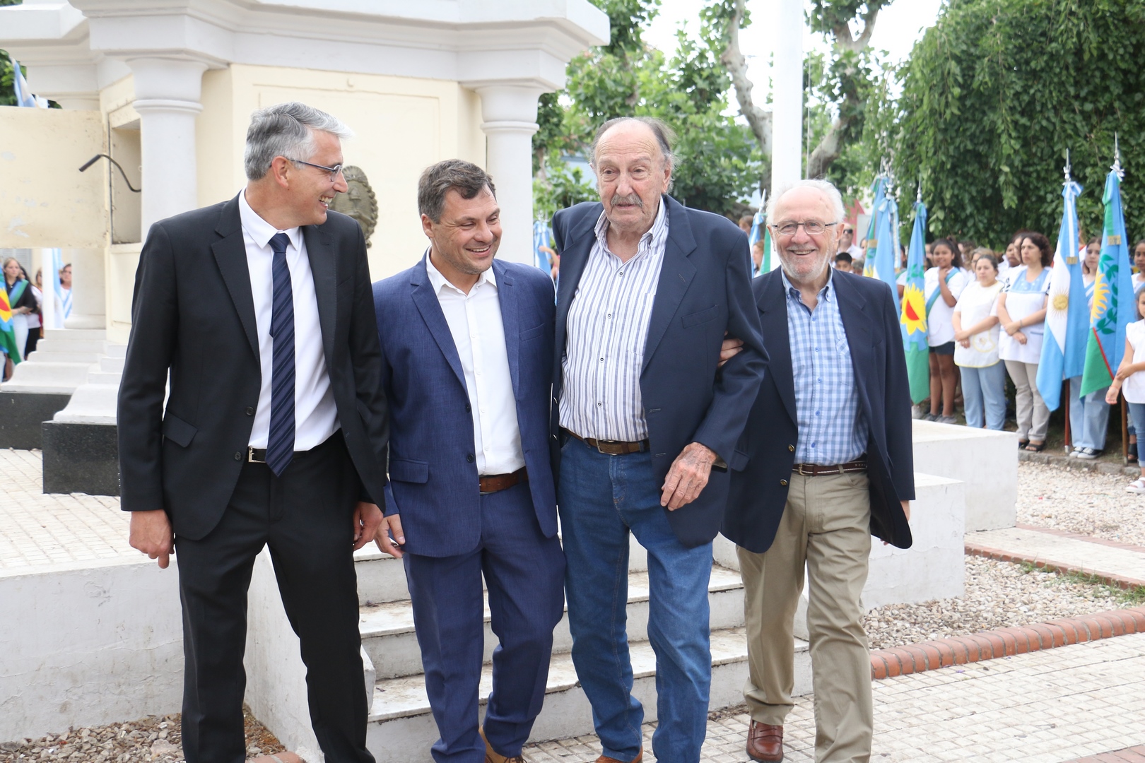 Junto al actual intendente Miguel Gesualdi izaron las banderas los ex intendentes.
