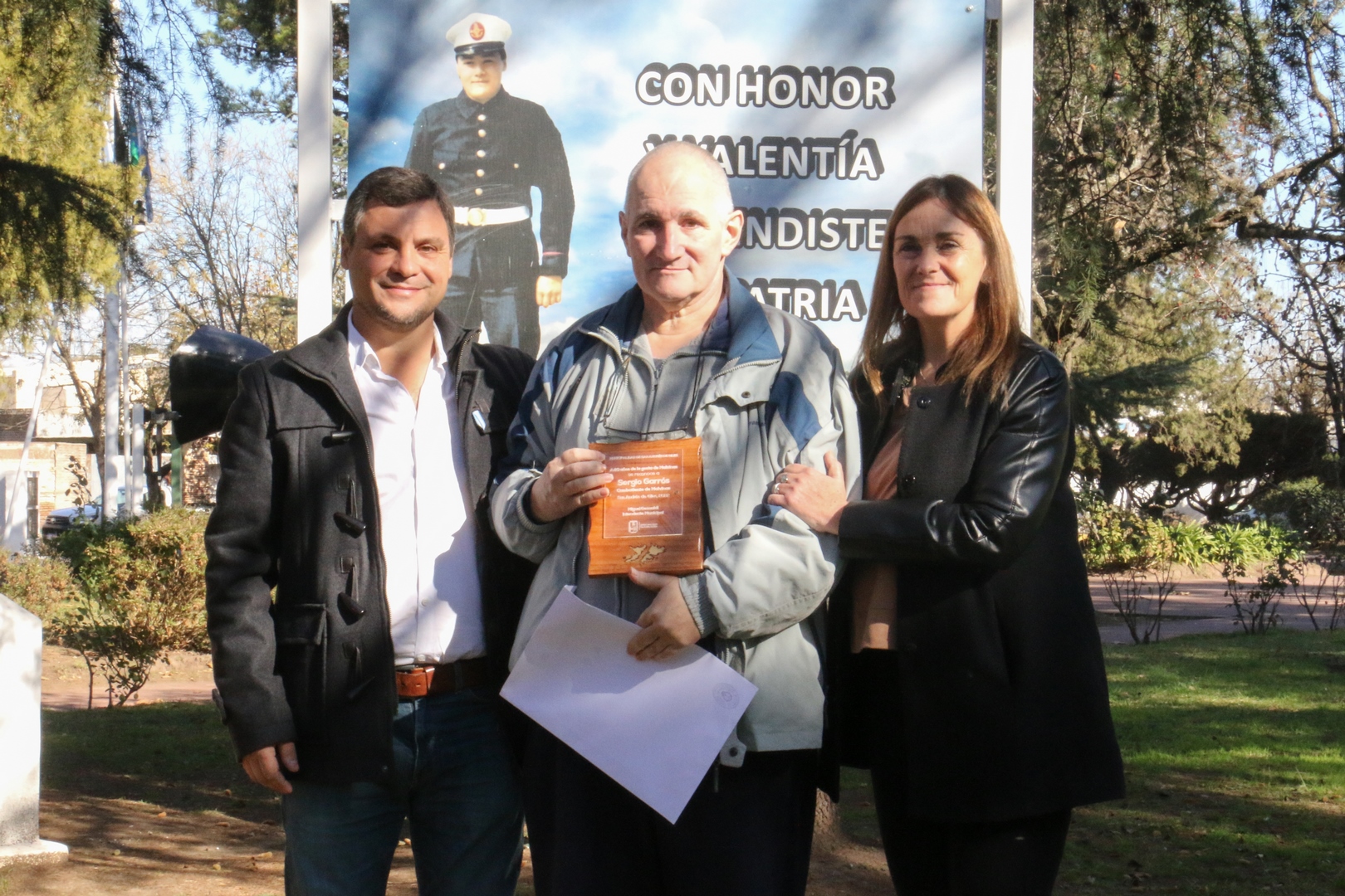 La fecha del 12 de junio fue elegida para hacer el acto, en conmemoración del fallecimiento del soldado Jorge Alfredo Maciel. Fue combatiente voluntario y héroe nacional (nativo de nuestra ciudad). Ese día de 1982 perdía la vida en la batalla de Monte Longdon. Su madre, Nélida Fuentes de Maciel asistió al evento.