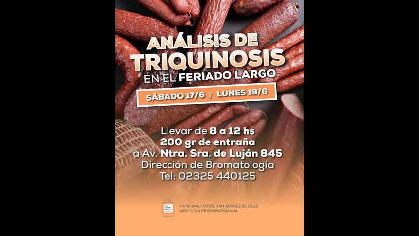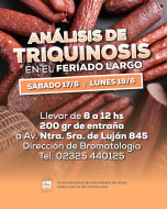 Los vecinos podrán concurrir llevando 200 gramos de entraña de cerdo para el análisis de triquinosis y seguir evitando esta enfermedad que provoca graves consecuencias en la salud de las personas.