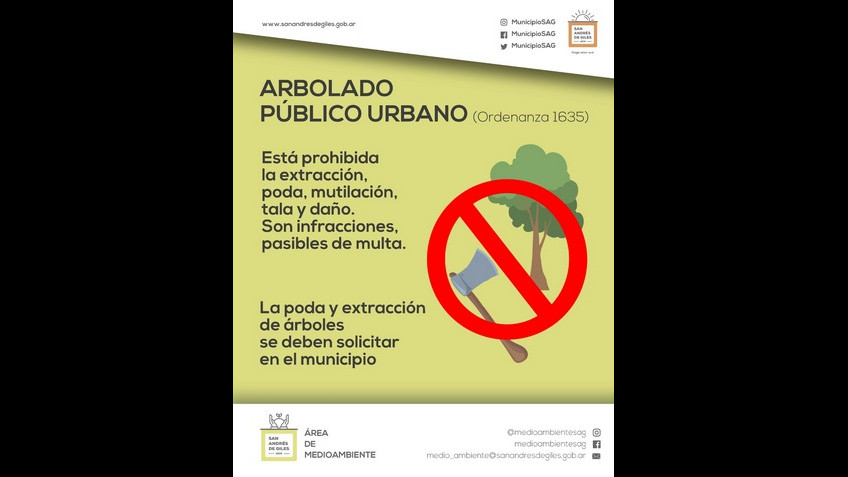 · Está prohibida la extracción, poda, mutilación, tala y daño de ejemplares del arbolado público urbano.