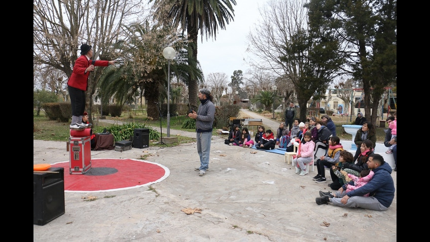 El domingo 26 de junio en la plaza Felipe Santiago Espil de la localidad de Villa Espil se presentaron “Zia e Nipote”, con su espectáculo “Circo en familia”.