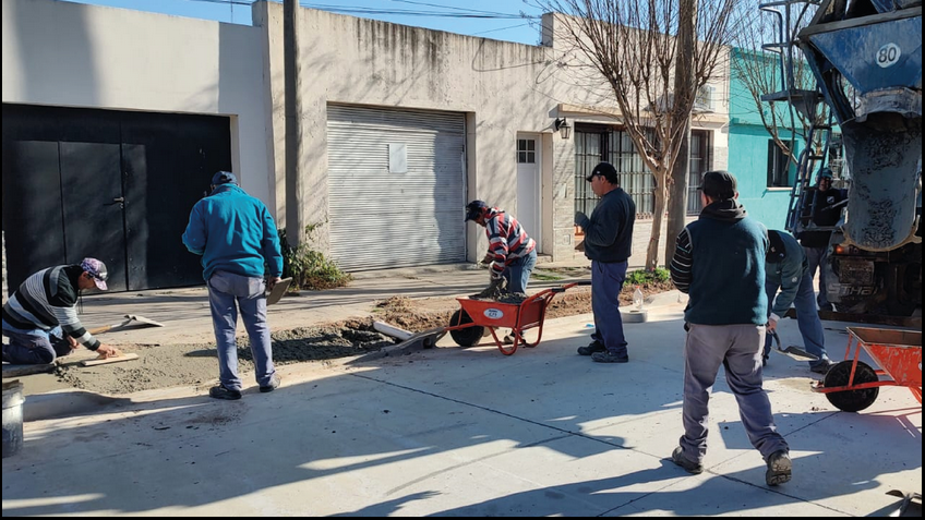 Finalizada la etapa de hormigonado, comenzaron los arreglos de las veredas en las cuadras de calle Maipú.