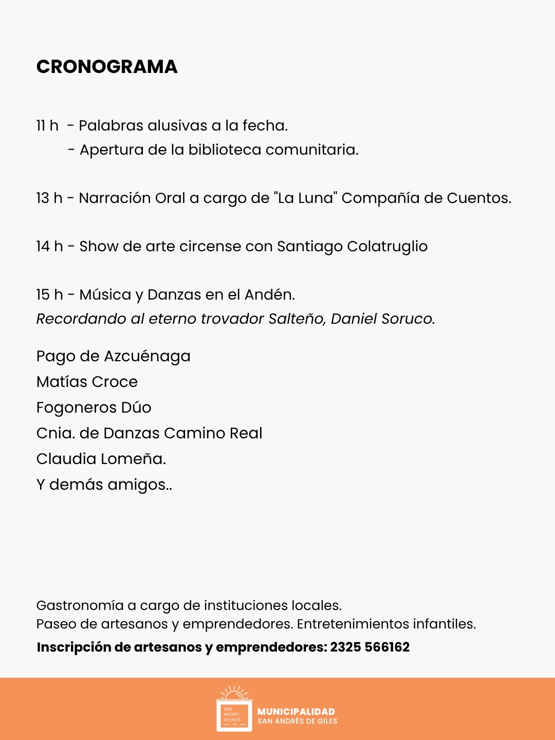 Además, en el marco de la celebración se inaugura la Biblioteca Comunitaria, un nuevo espacio destinado a fortalecer el acceso a la cultura y el conocimiento en la localidad.