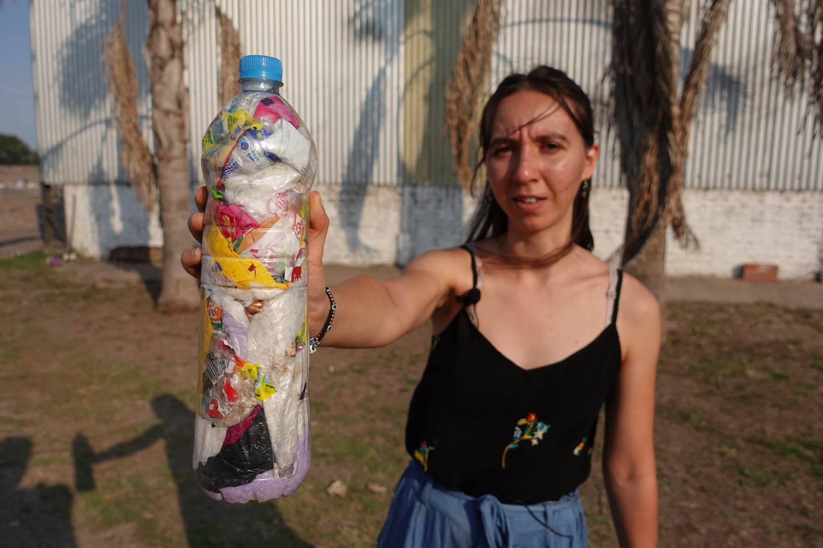 La idea es rellenar una botella plástica con todos los DESECHOS PLÁSTICOS BLANDOS que generamos a diario: paquetes de fideos, de galletitas, envoltorios de toallitas o de protectores diarios, envoltorios de papel de cocina o higiénico, bolsitas de plástico, etiquetas de botella de agua/aceite/gaseosa, sachet de leche (bien limpios, sin restos orgánicos), por solo nombrar algunos...