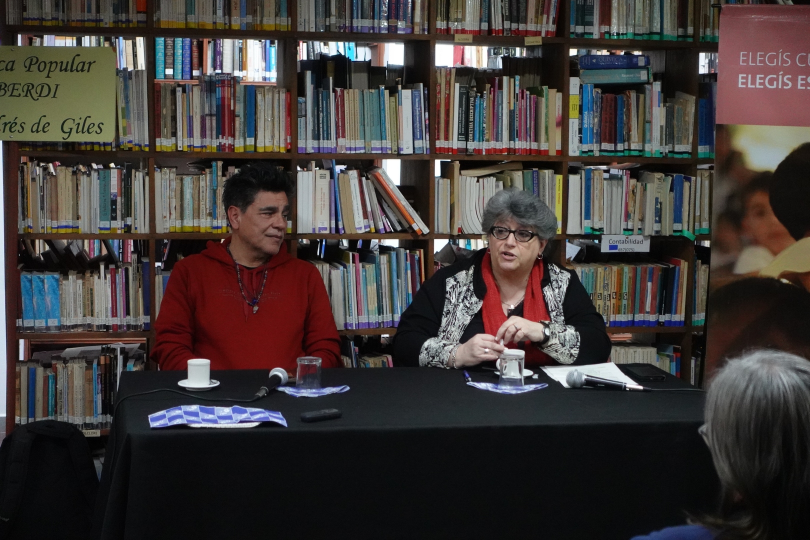 Luego de la presentación y bienvenida de la directora de la Biblioteca Viviana Scao, el actor Juan Palomino y la gestora cultural Lidia Bracco hablaron sobre “Territorios teatrales y gestión cultural”.