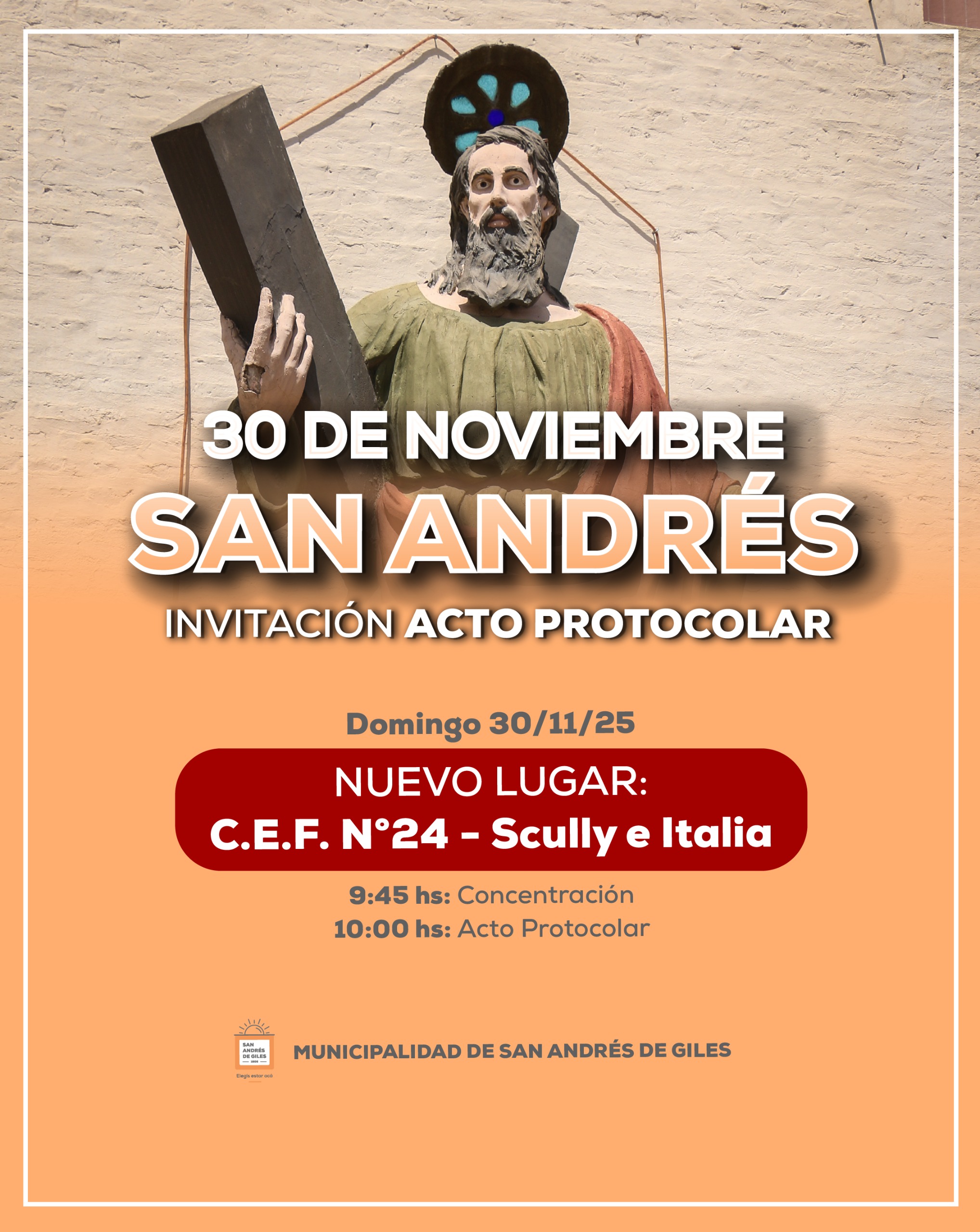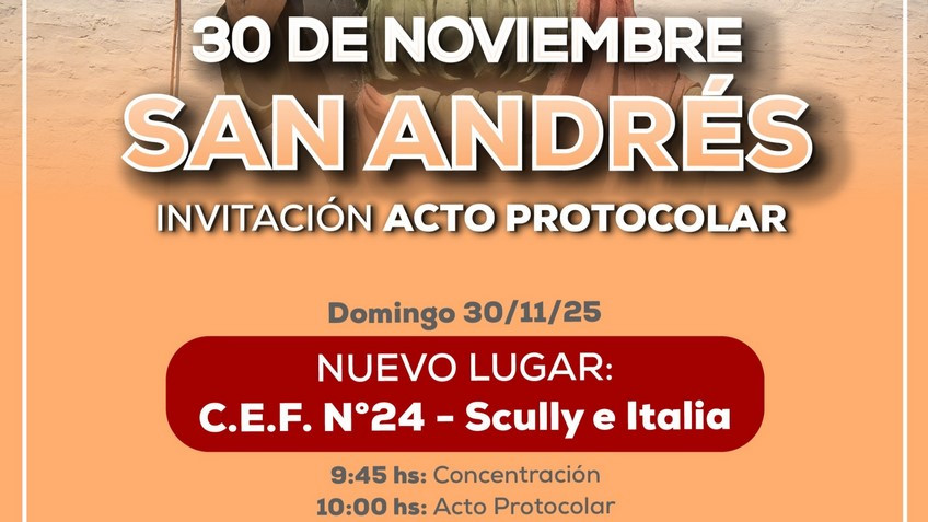Por cuestiones de capacidad del lugar, la Municipalidad decidió realizar el acto protocolar del 30 de noviembre, patronales de nuestra ciudad, en las instalaciones del C.E.F. N° 24, av. Scully e Italia.