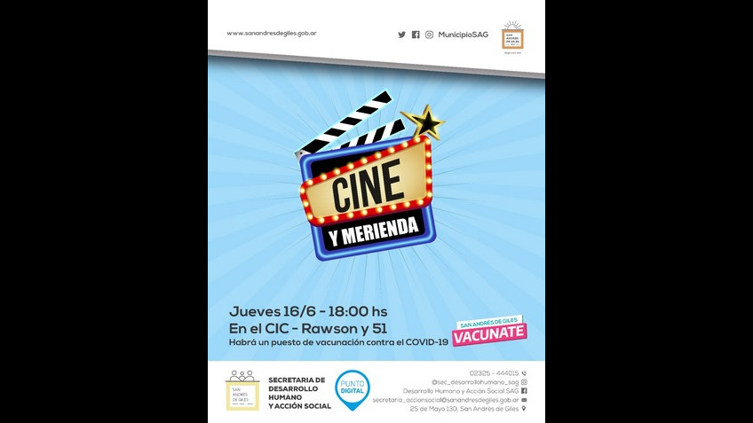 Este 16 de junio desde las 18 horas, en el Centro Integrador Comunitario, se brindará una película, la merienda y se completará esquemas de la Vacuna contra el COVID-19.