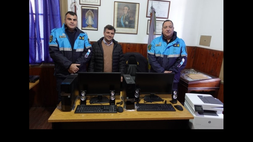 El intendente Miguel Gesualdi se acercó a la Comisaría para hacer entrega de dos computadoras de escritorio y una impresora laser.