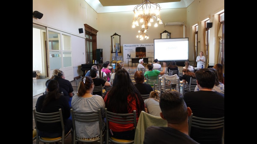 Comenzó el Curso de Manipuladores de Alimentos en el Salón Auditorio de la Municipalidad. El mismo es brindado por la Lic. en Nutrición, Carolina Carabelli por solicitud de la Dirección Municipal de Producción. En realidad, la profesional brinda en estos días el Curso a dos grupos de vecinos, de mañana y tarde, ante la gran demanda.