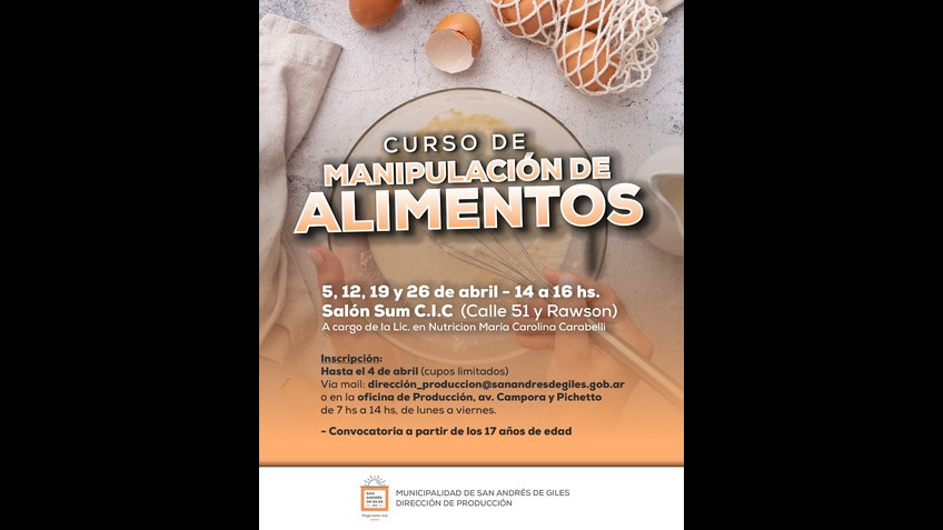 La Dirección Municipal de Producción te invita a participar del Curso de Manipuladores de Alimentos.