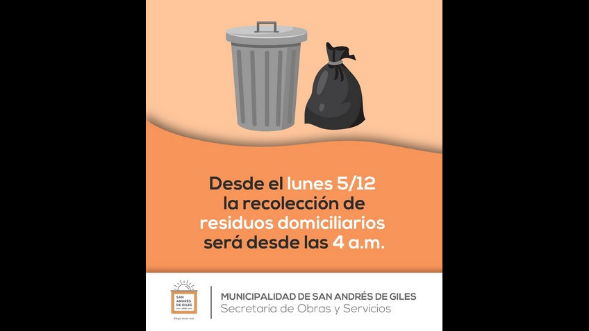 Desde el lunes 5 de diciembre, la Secretaría de Obras y Servicios Públicos recogerá las bolsas de residuos domiciliarios a partir de las 04:00 horas.