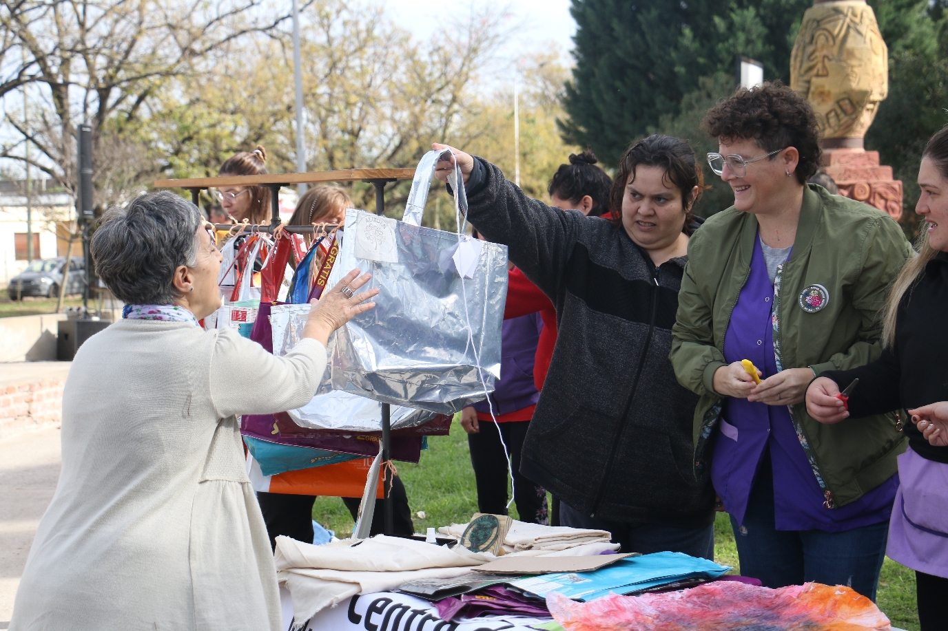 El Centro de Día Alihuén estuvo con su directora Agustina Dubois con un stand de bolsos sustentables, diseñadas por ellos mismos bajo el concepto del reciclado.