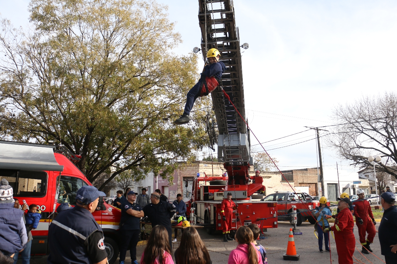 En el marco del Día del Bombero Voluntario, los bomberos locales estuvieron brindando actividades para todos: tirolesa a cargo de Bomberos de Campana, exposición de autobombas, división de riesgos especiales Brigada k9 (a cargo de Bomberos de la Provincia), una estación de aprendizaje de RCP y un simulacro de incendio y rescate.