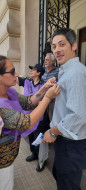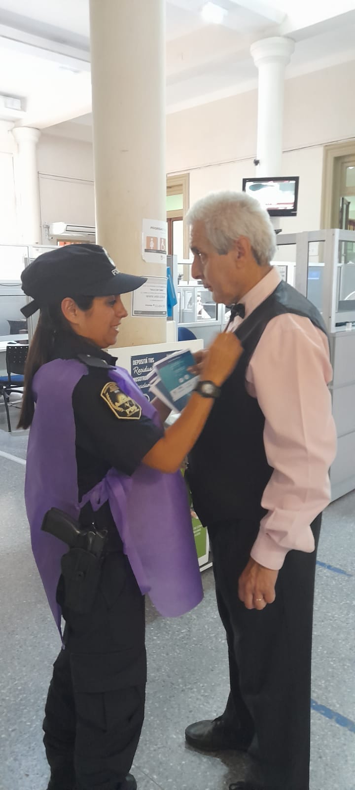 El área de Género y Diversidad de la Secretaría de Desarrollo Humano y Acción Social y la Comisaría de la Mujer y la Familia recorrieron esta semana los pueblos rurales y hoy la ciudad distribuyendo folletería y los lazos característicos para concientizar.