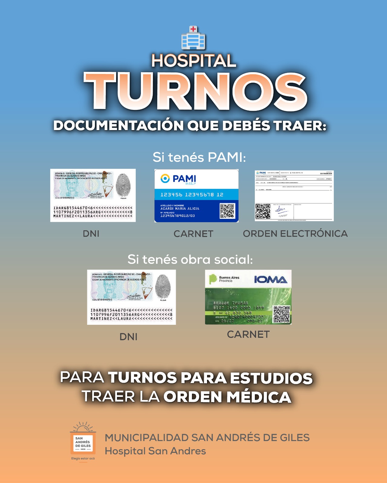 Documentación para solicitar turnos en el Hospital San Andrés