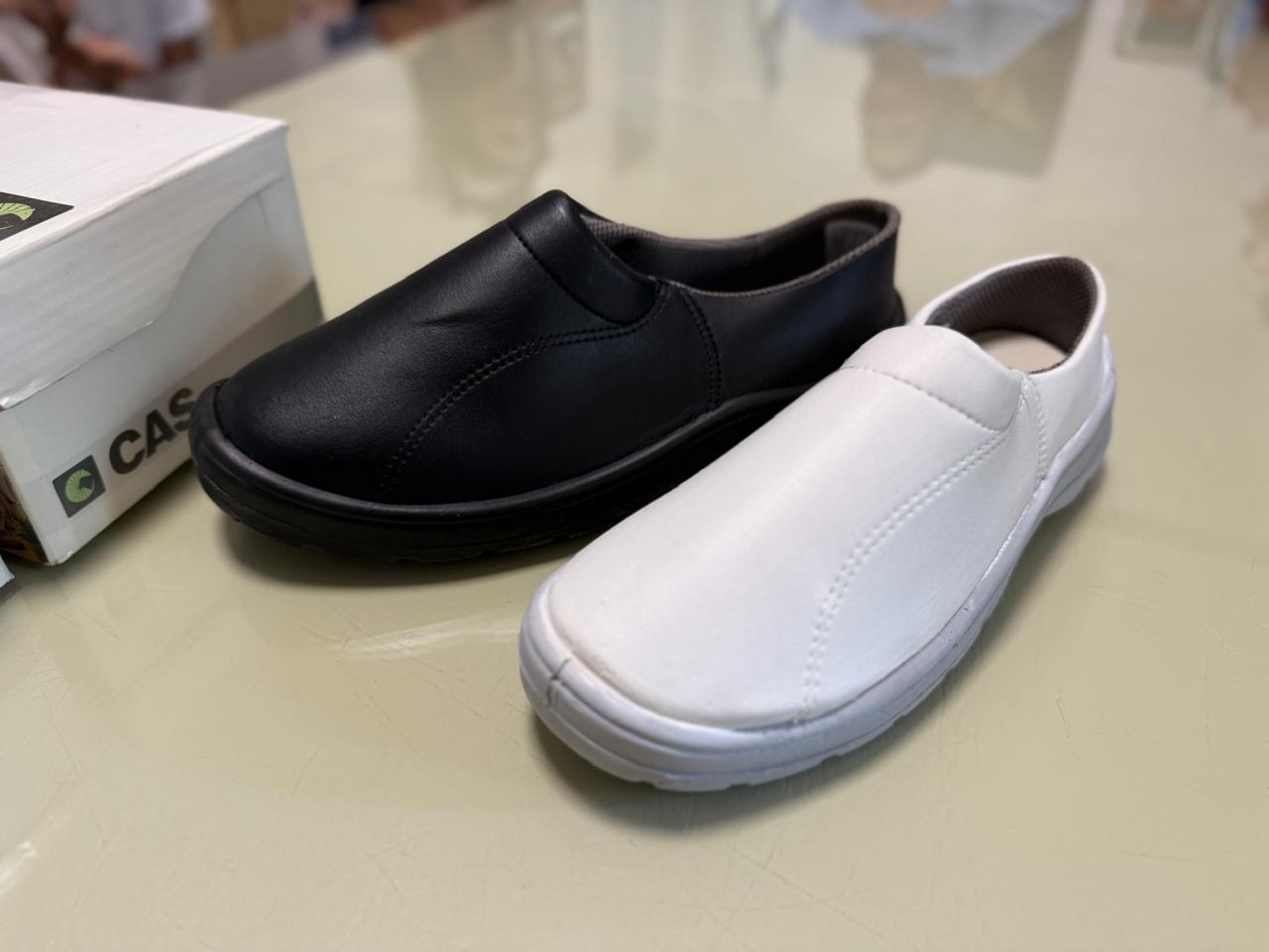 Hicieron una donación de unas 40 cajas de calzado para quirófano.