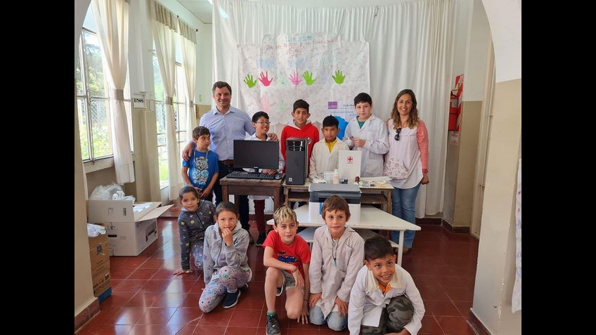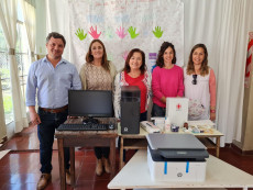 El intendente Miguel Gesualdi se acercó al establecimiento educativo para hacer entrega de una computadora, una impresora multifunción y un botiquín de primeros auxilios. Este equipamiento fue solicitado previamente por la cooperadora de la institución.