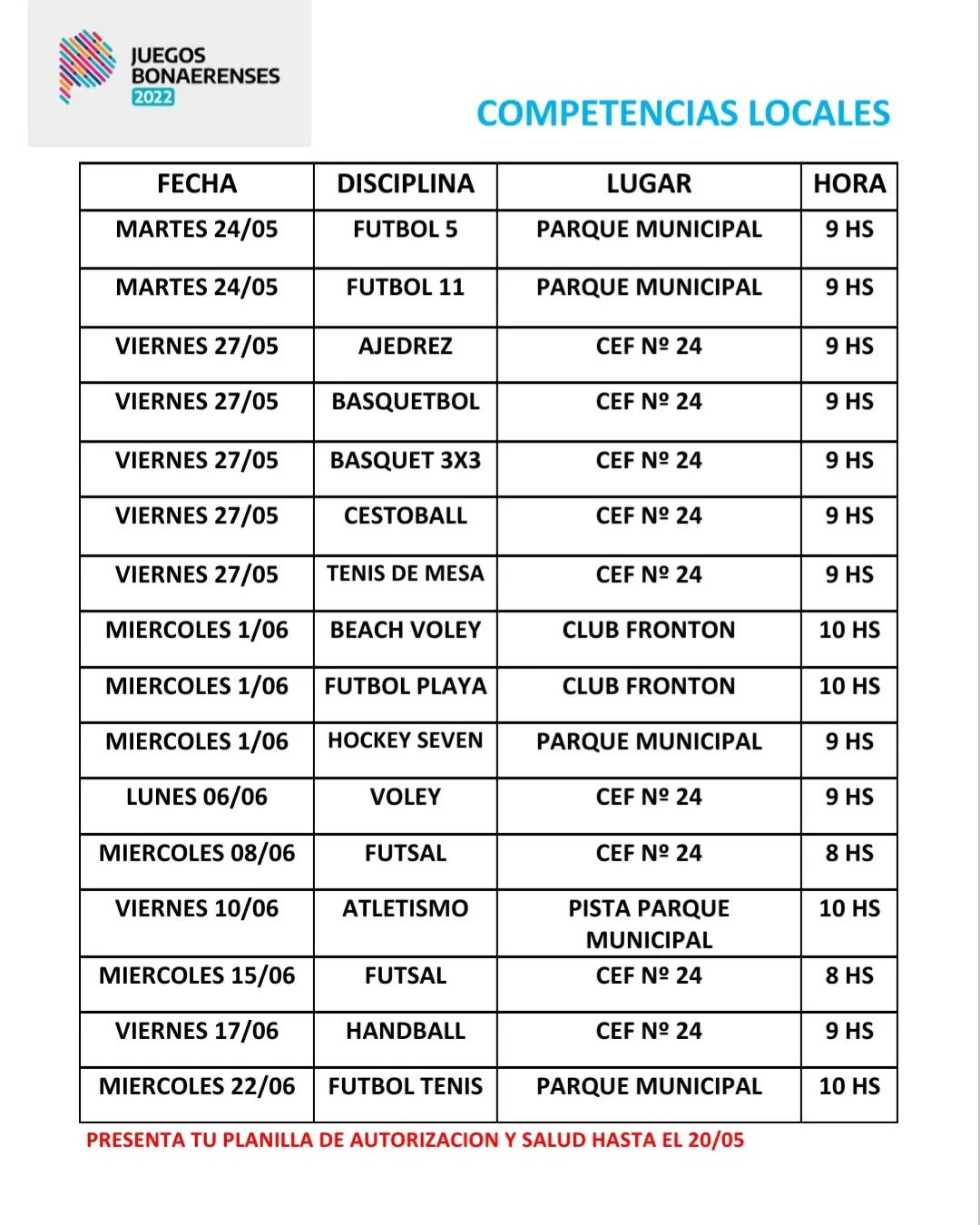 Fechas de la Etapa Local de los Juegos Bonaerenses