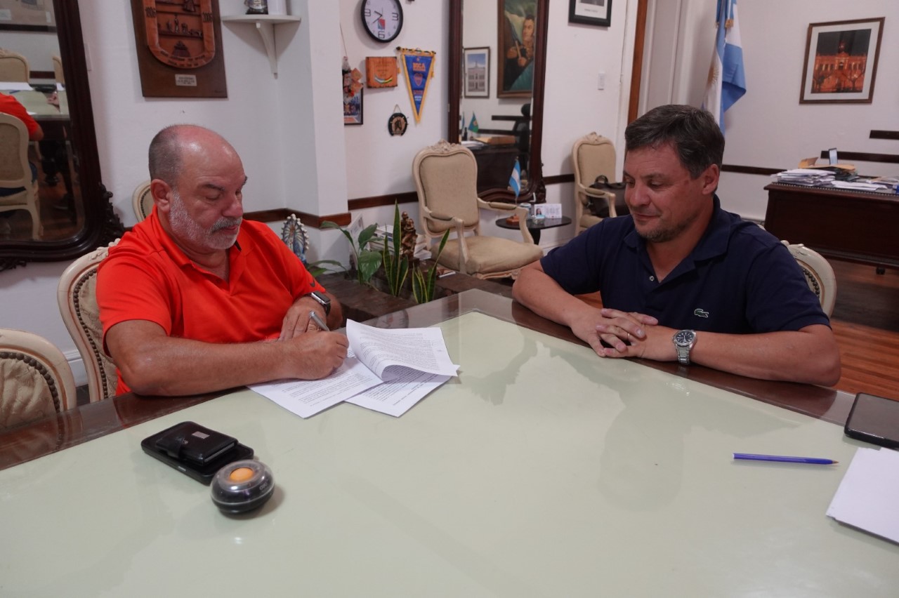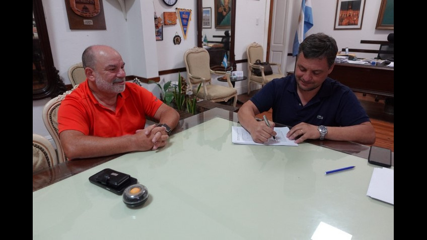 El intendente Miguel Gesualdi firmó este 7 de febrero en su despacho el contrato para la realización de un polideportivo en el pueblo de Solís. Por la parte constructora lo hizo el apoderado de la Cooperativa de Trabajo Bicentenario Nacional Limitada, Salvador Laganá. Estuvieron presentes el asesor Legal, Leandro Zanella y el concejal Mauricio Oliva.