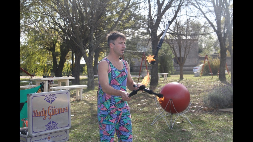 "Rudy Güemes presentó el domingo 22 su “Espectacular Espectáculo" desplegando sus habilidades circenses en la plaza Manuel Belgrano de la localidad de Franklin.  Su show viene acompañado de la mano de Argentina Florece Teatral, con el apoyo del Instituto Nacional del Teatro y el Ministerio de Cultura de la Nación.