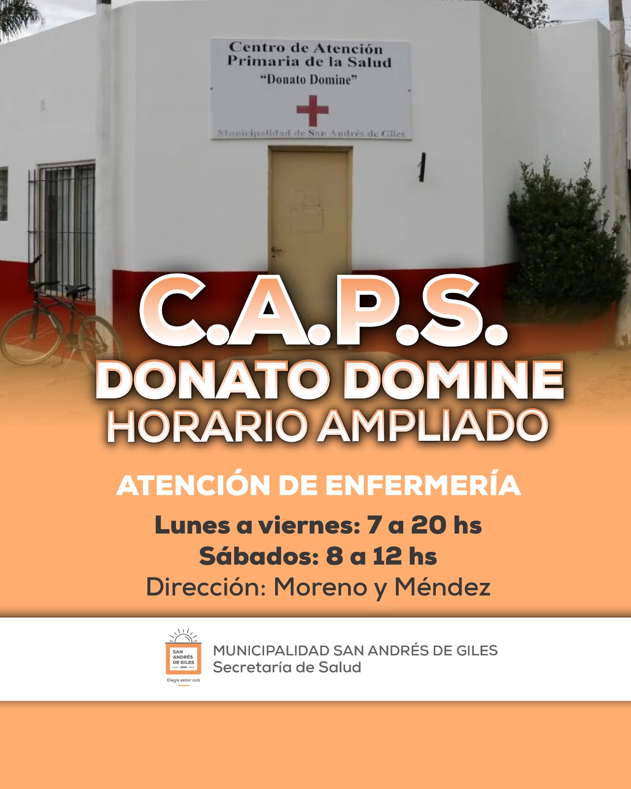 El Centro de Atención Primaria de Salud “Donato Domine”, ubicado en Moreno y Méndez, barrio Villa Manchi, atiende su servicio de enfermería, de lunes a viernes, de 07:00 a 20:00 horas y los sábados de 08:00 a 12:00 horas.