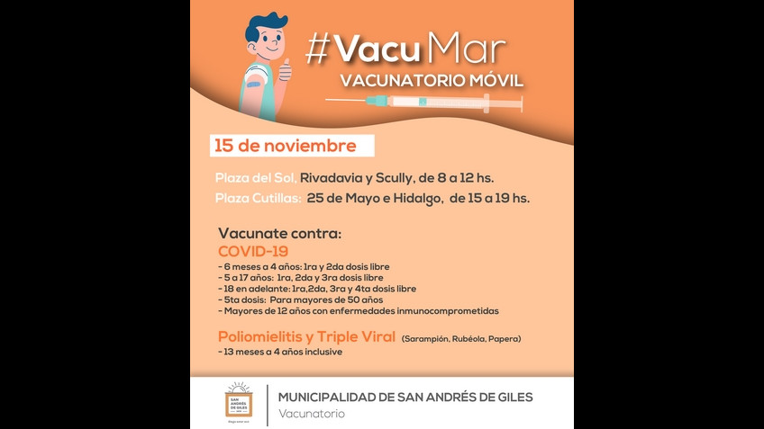 HOY MARTES, se está realizando la campaña de vacunación #VACUMAR en: