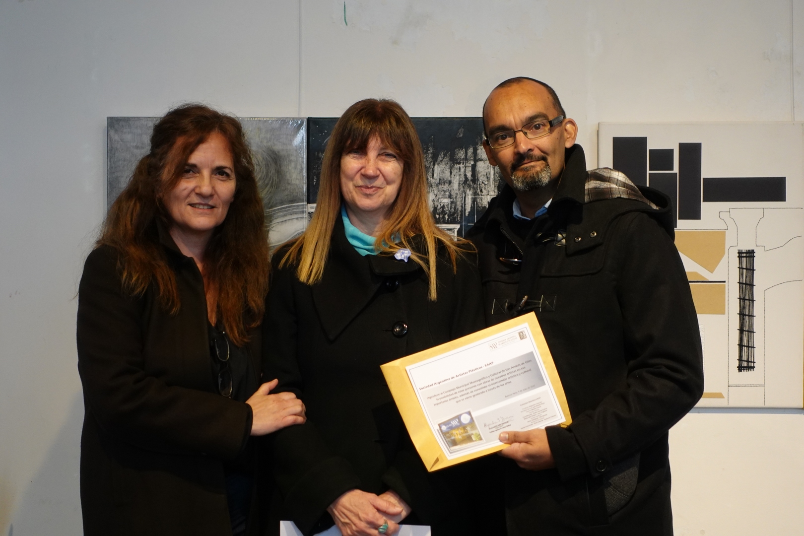 Alejandra Zucconi, presidenta de la Sociedad Argentina de Artistas Plásticos, hizo entrega de un agradecimiento a la Dirección de Cultura, Turismo y Patrimonio.