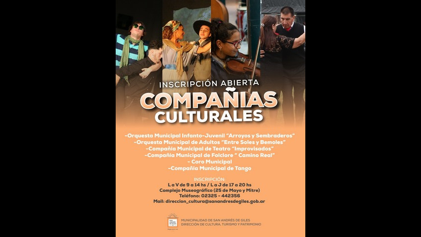 La Dirección de Cultura, Turismo y Patrimonio informó que está abierta la inscripción para integrar las Compañía Culturales.