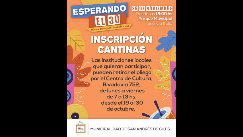 Las instituciones locales que quieran participar, pueden retirar el pliego en el Centro de Cultura, Rivadavia 752, de lunes a viernes, de 7 a 13 horas, desde el 19 a 30 de octubre.
