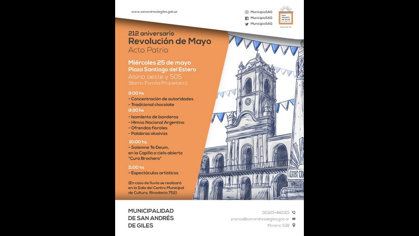 Invitación: 212 ANIVERSARIO DE LA REVOLUCIÓN DE MAYO