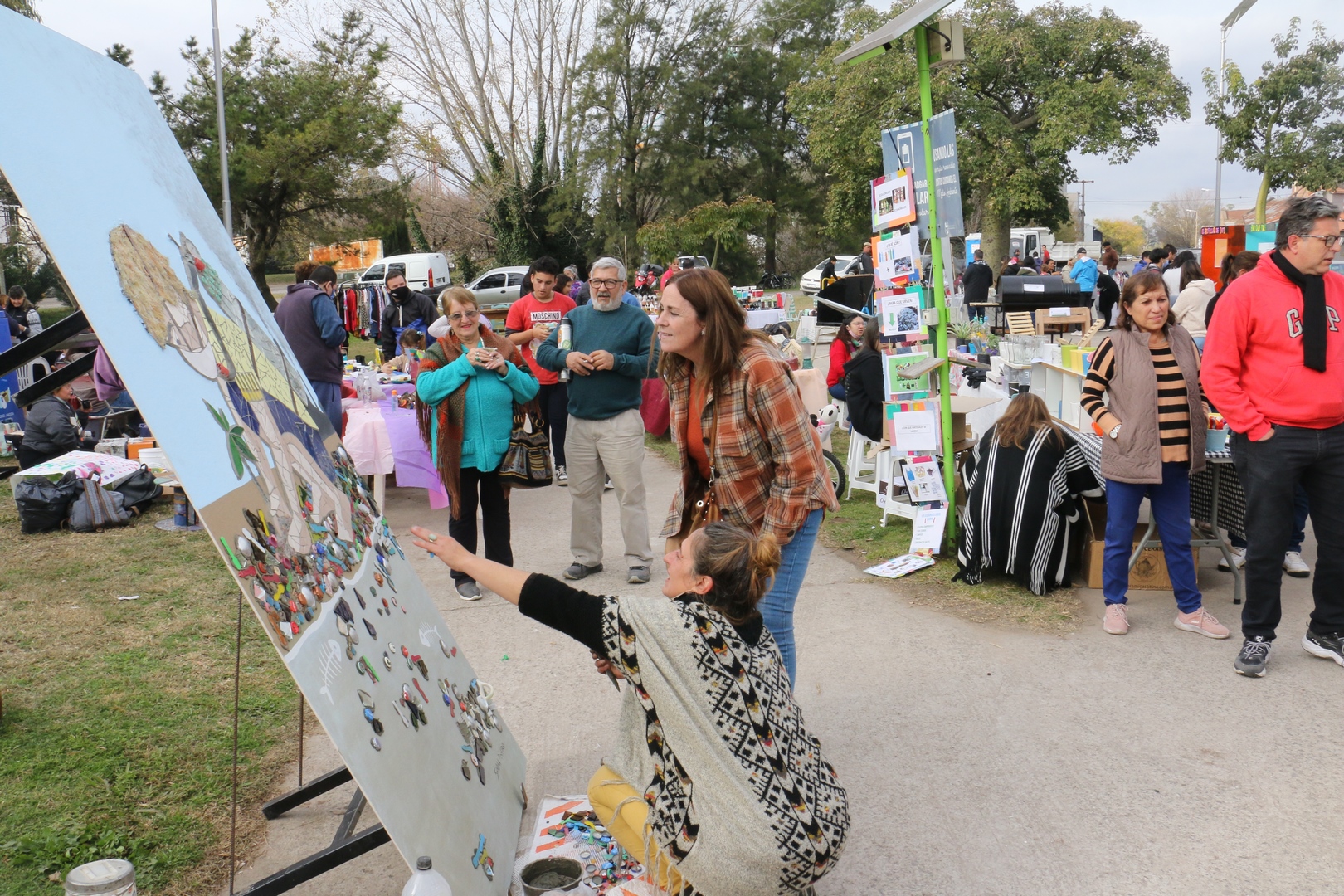 Acompañando durante toda la tarde estuvo la Feria del Club de Emprendedoras, el Stand del Centro de Día “Añihuén” con propuesta de Ecoteca con materiales reciclables y centro de acopio de botellas de amor/Ecoladrillos (botellas plásticas rellenadas con cualquier tipo de residuos plásticos y papel aluminio) y estudiantes de la Escuela Técnica Nº 1 con una exposición de proyectos de energía renovable.