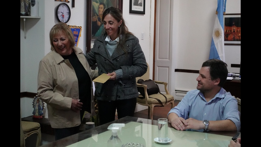 Noely Meretta entregó dinero a la Asociación Cooperadora del Hogar de Geriátrico “Nuestra Señora de Luján”, siendo recibido por su presidenta Marta Puglelli.